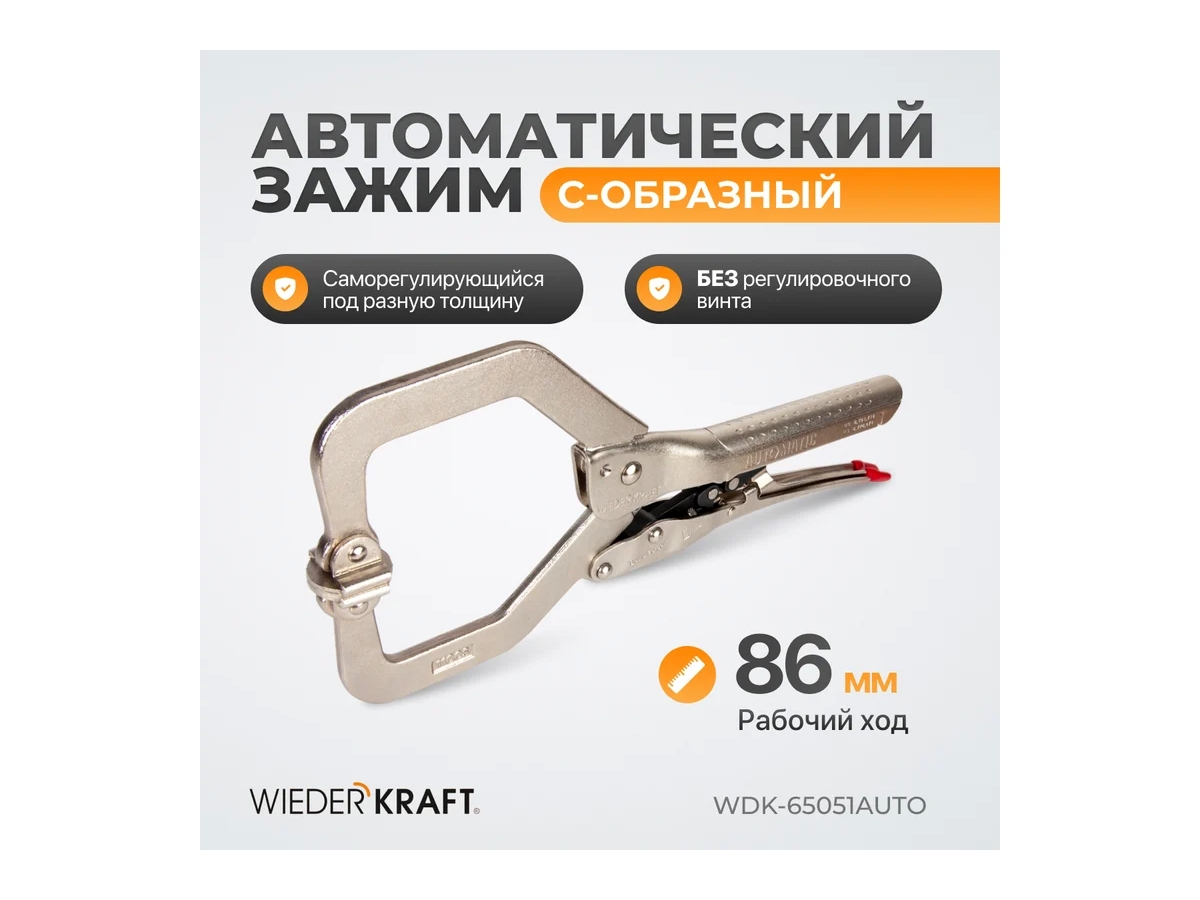 Автоматический С-образный зажим WDK-65051AUTO с фиксатором предназначен для надежного удержания деталей при сварке, сборке и других слесарных работах. Благодаря автоматической подстройке под толщину заготовки инструмент значительно ускоряет рабочий процесс и повышает удобство эксплуатации. Усилие зажима при необходимости регулируется вручную для точной подгонки под конкретную задачу.