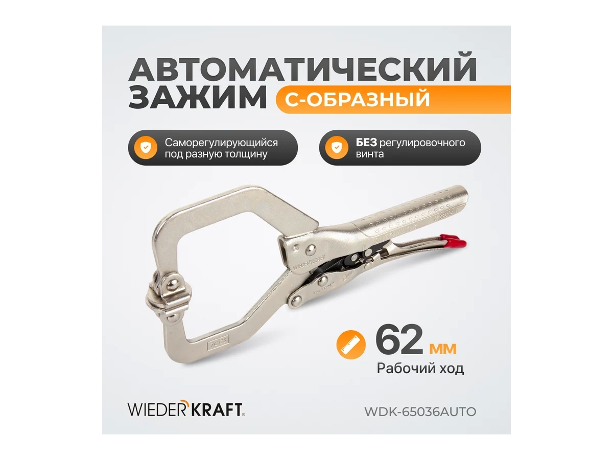 Автоматический С-образный зажим WDK-65036AUTO с фиксатором предназначен для надежного удержания деталей при сварке, сборке и других слесарных работах. Благодаря автоматической подстройке под толщину заготовки инструмент значительно ускоряет рабочий процесс и повышает удобство эксплуатации. Усилие зажима при необходимости регулируется вручную для точной подгонки под конкретную задачу.