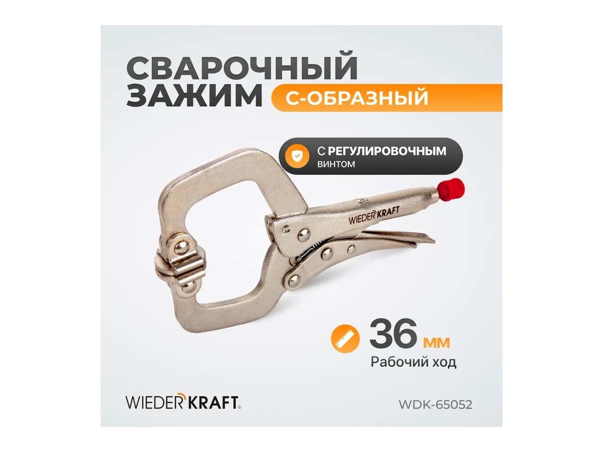 С-образный зажим WIEDERKRAFT WDK-65036 предназначен для надежной фиксации деталей при сварке, сборке и других ремонтных работах. Изготовлен из легированной стали с хромированным покрытием, обеспечивающим защиту от коррозии и механических повреждений. Конструкция зажима проста, удобна и рассчитана на длительную эксплуатацию. Винт оснащен технологическим отверстием для более надежной фиксации и удобства регулировки.