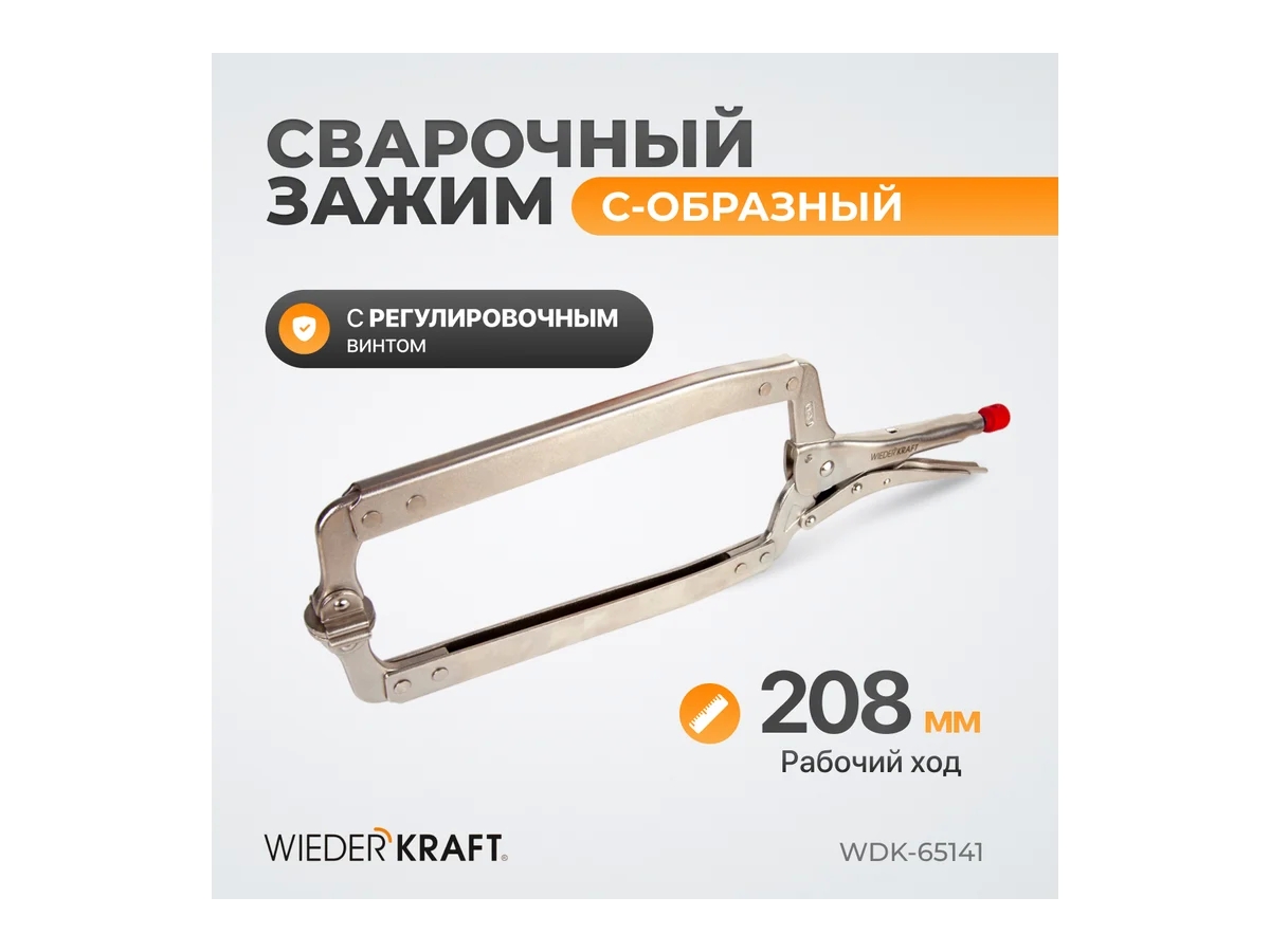 С-образный зажим WIEDERKRAFT WDK-65141 предназначен для надежной фиксации деталей при сварке, сборке и слесарных работах. Прочная конструкция из легированной стали с хромированным покрытием устойчива к износу и коррозии. Зажим оснащен регулировочным винтом с технологическим отверстием, что обеспечивает удобную и точную настройку усилия.