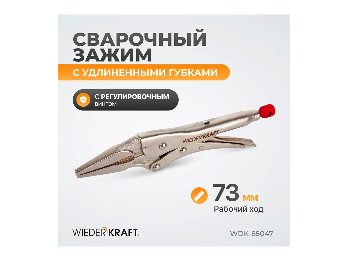 Удлиненный зажим WIEDERKRAFT WDK-65047 предназначен для надежной фиксации деталей при сварке, сборке и других ремонтных работах. Изготовлен из легированной стали с хромированным покрытием, обеспечивающим защиту от коррозии и механических повреждений. Конструкция зажима проста, удобна и рассчитана на длительную эксплуатацию. Винт оснащен технологическим отверстием для более надежной фиксации и удобства регулировки.