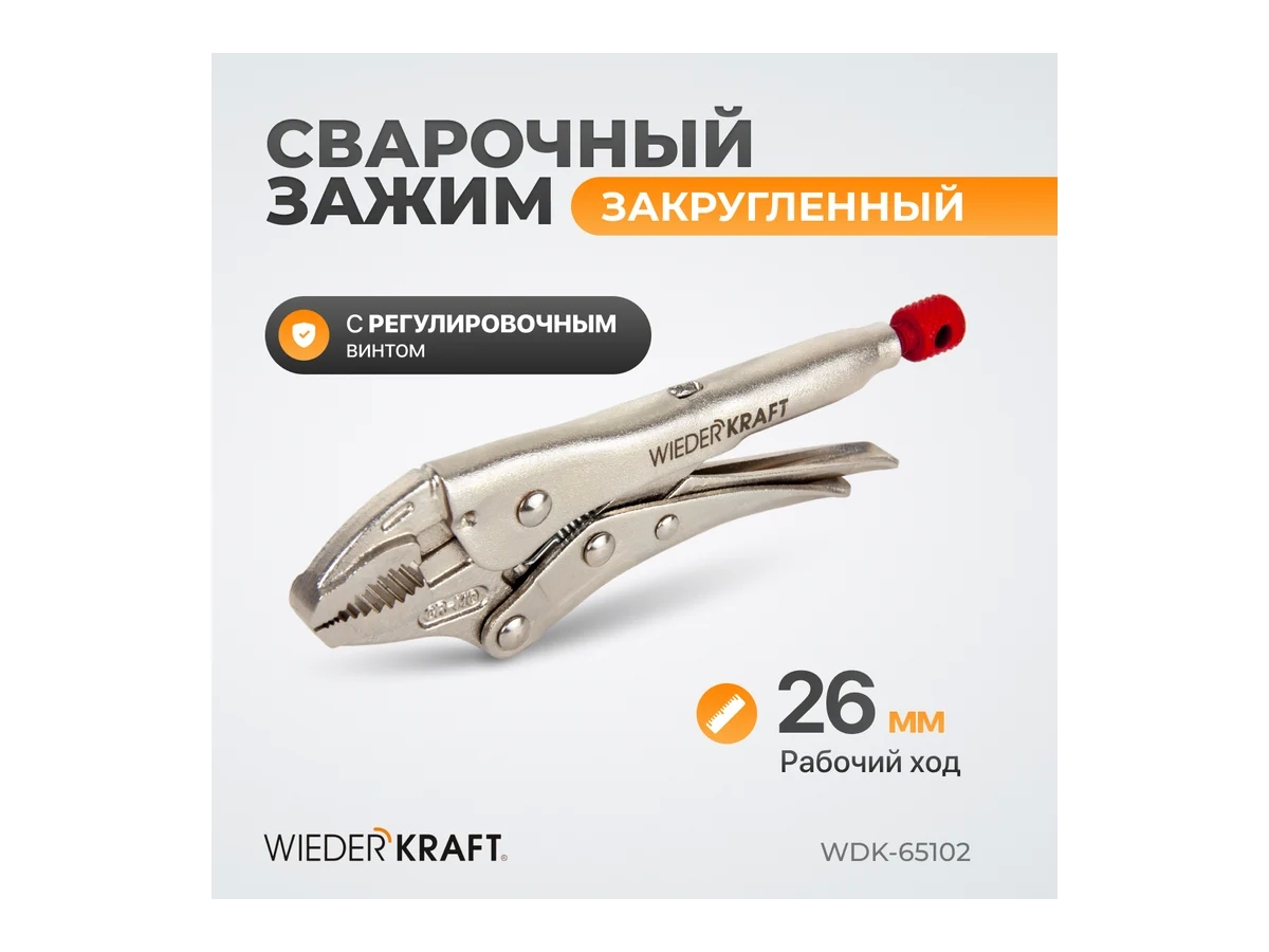 Плоский зажим WIEDERKRAFT WDK-65102 предназначен для надежной фиксации деталей при сварке, сборке и других ремонтных работах. Изготовлен из легированной стали с хромированным покрытием, обеспечивающим защиту от коррозии и механических повреждений. Конструкция зажима проста, удобна и рассчитана на длительную эксплуатацию. Винт оснащен технологическим отверстием для более надежной фиксации и удобства регулировки.