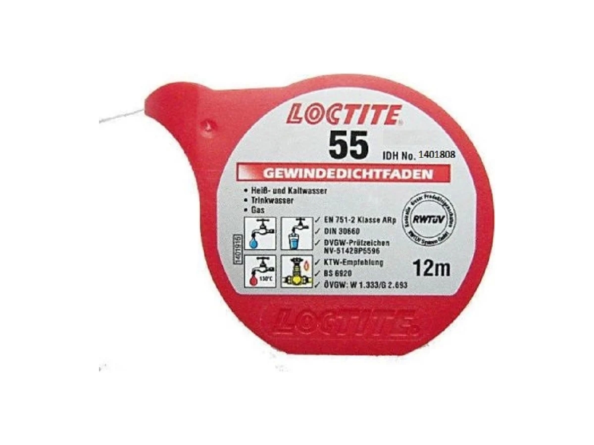 Герметизирующая нить для газа и питьевой воды LOCTITE 55 24х12 м 1401808 мгновенно герметизирует резьбовое трубное соединение на максимальное давление.