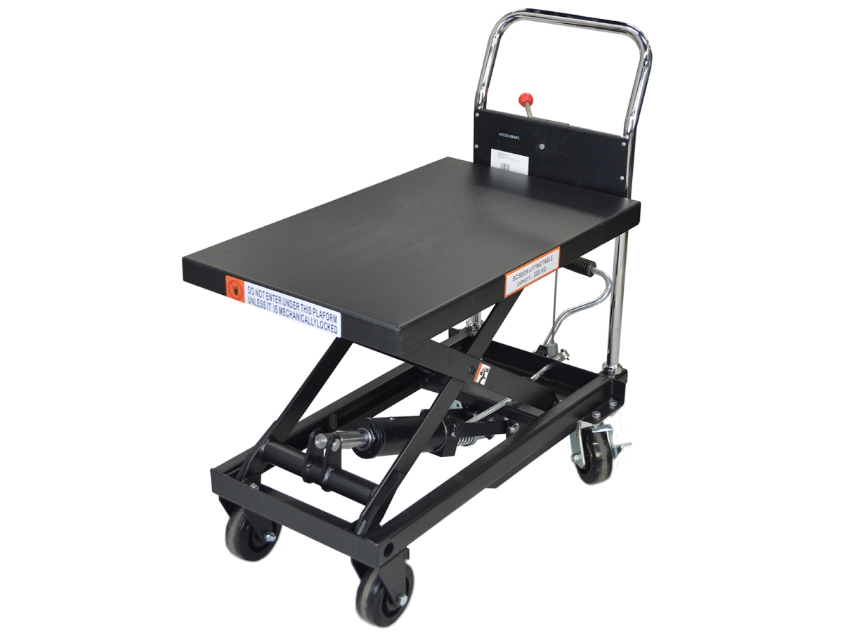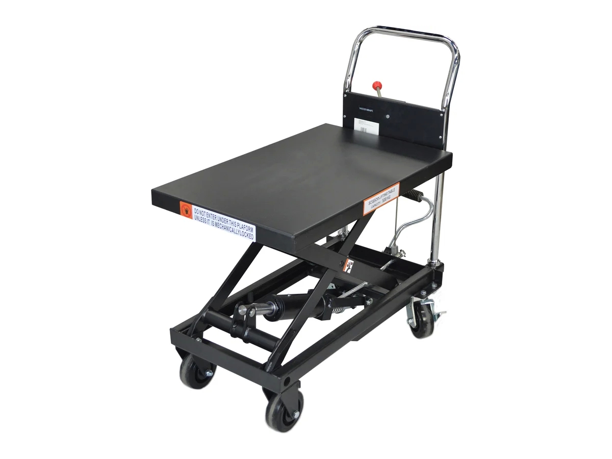 Платформенная тележка с подъемным столом WiederKraft WDK-84050 с грузоподъемностью 500 кг используется для перемещения и поднятия грузов в автосервисах, СТО, мастерских, на складах и производственных предприятиях. Оснащена ножничным механизмом, обеспечивающим плавный подъем на высоту до 900 мм.