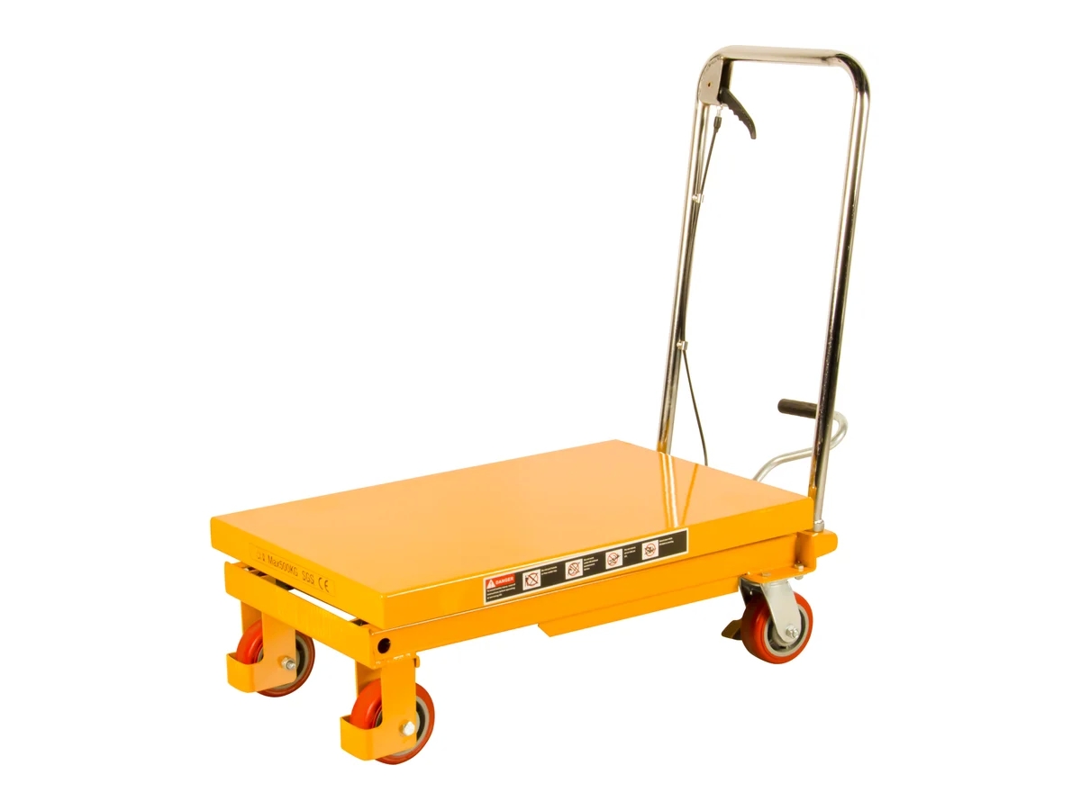 Подъемный стол WIEDERKRAFT г/п 500 кг WDK-84070 применяется для свободного перемещения грузов в рабочей зоне автосервисов, СТО, мастерских, производственных предприятий, а также для выполнения погрузо-разгрузочных работ. Надежный ножничный механизм позволяет плавно поднимать груз на высоту до 930 мм, облегчая выполнение погрузо-разгрузочных работ и операций по монтажу-демонтажу тяжелых агрегатов.
