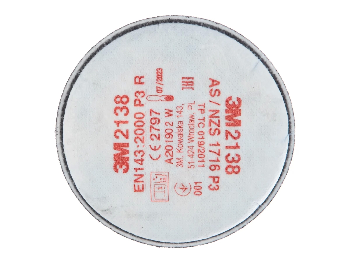 Противоаэрозольный фильтр 3М Р3 с дополнительной защитой от запахов №2138 РОЗ 7000029735 совместим с полумасками 3M™ 6000, 3M™ 6500QL и 3M™ 7500 , а также полнолицевыми масками 3M ™.