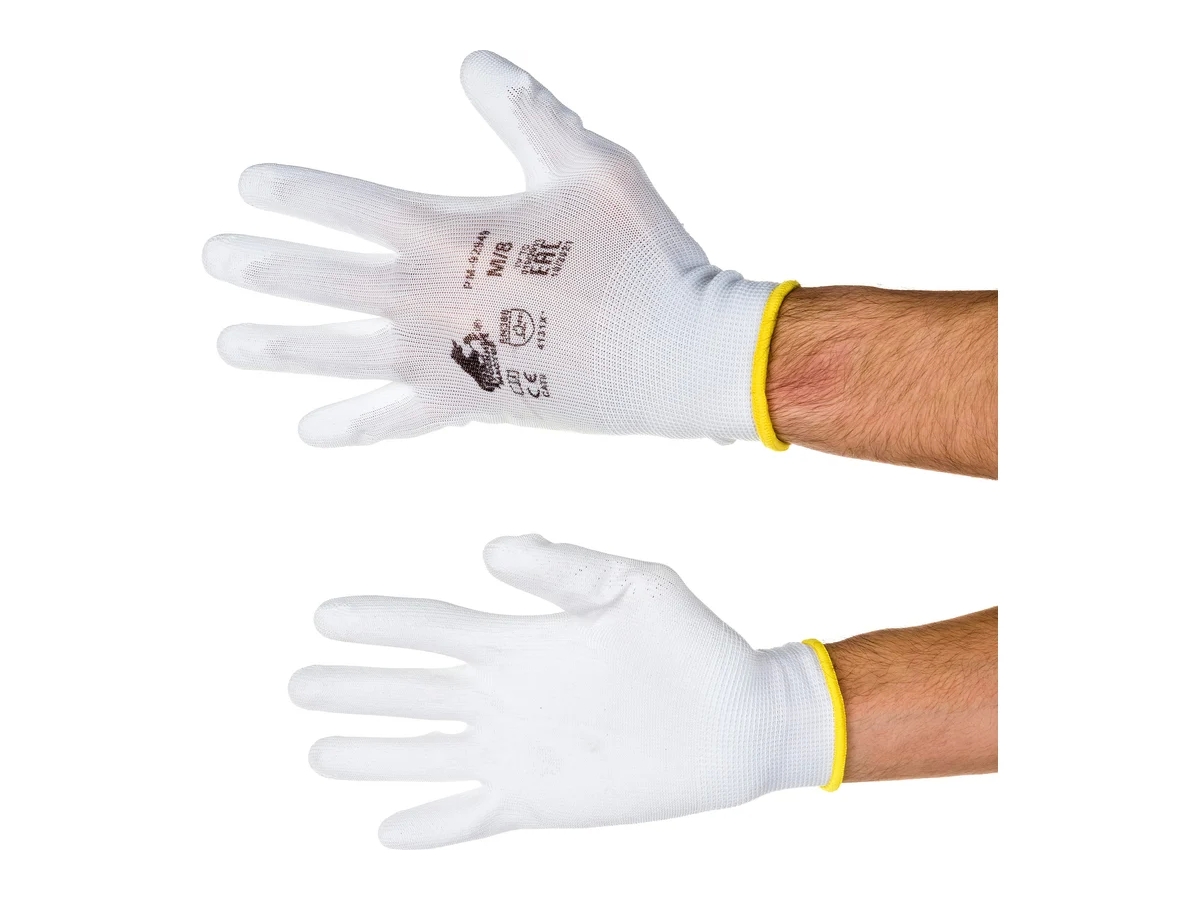 Перчатки с полиуретановым обливом Русский Мастер, белые/черные, р.M/8, 2 шт. РМ-92949 защищают руки во время различных работ.