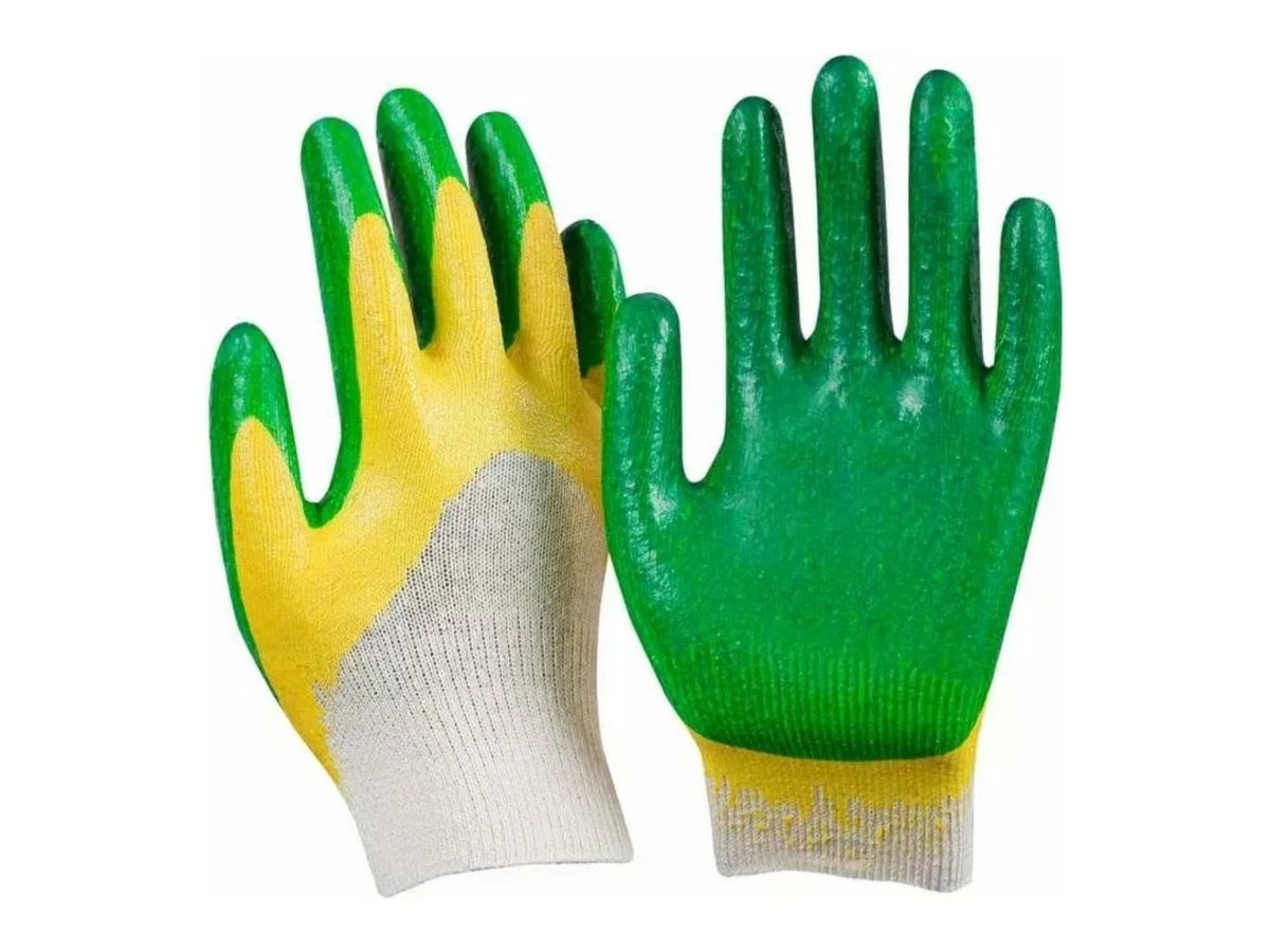Рабочие перчатки с двойным латексным покрытием Русский Мастер XL/10 РМ-380457 защищают руки от механических воздействий и загрязнений.