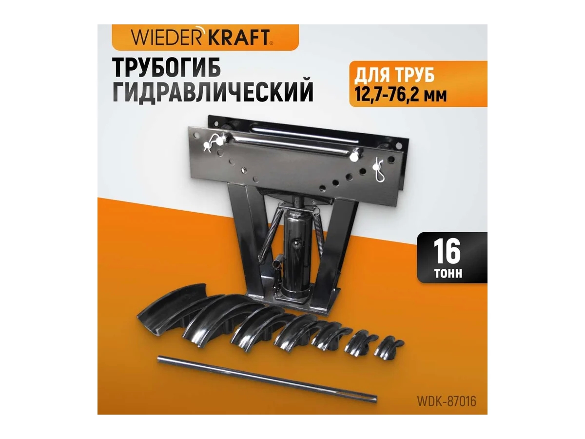 Гидравлический трубогиб (усилие 16 т, для труб 12,7-76,2 мм) WIEDERKRAFT WDK-87016 предназначен для гибки круглых труб диаметром от 12,7 до 76,2 мм. Устройство позволяет точно формировать изгибы без изменения внутреннего сечения трубы, что делает его идеальным для работы с системами водоснабжения, отопления и газоснабжения. Надежный корпус окрашен для дополнительной защиты от коррозии, а регулировка угла сгиба выполняется простой перестановкой фиксирующих пальцев в одно из шести предусмотренных положений.