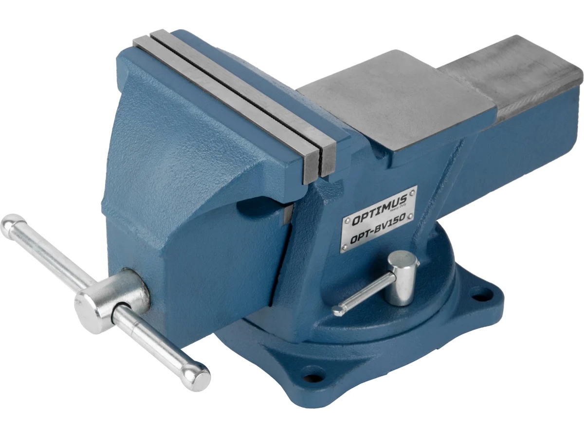 Поворотные слесарные тиски OPTIMUS OPT-BV150 представляют собой универсальное слесарное приспособление, используемое для выполнения различных слесарных работ в мастерских сервисных центров, ремонтных предприятиях, а также на средних и малых производствах. Основными преимуществами данной модели являются чугунный корпус и механизм поворота в горизонтальной плоскости, обеспечивающий удобное позиционирование деталей. Ширина губок составляет 150 мм. В конструкции предусмотрена наковальня для выполнения различных слесарных работ.