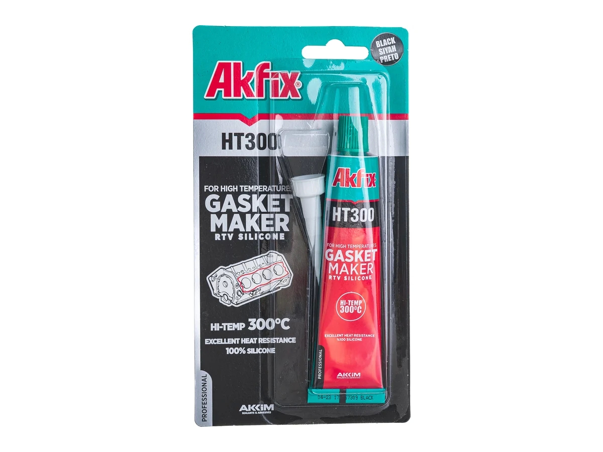 Термостойкий силиконовый герметик Akfix HT300, черный, 50 мл SA113 - однокомпонентный состав, рекомендуемый к использованию при ремонте и герметизации автомобилей, духовых шкафов, стыков в дымоходах и тд. Способен выдерживать температуру до 300 °С.