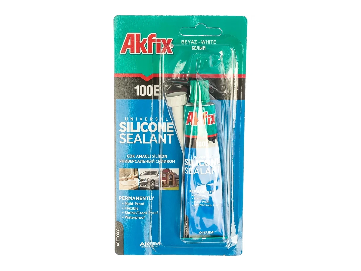 Универсальный силиконовый герметик Akfix 100E белый, 50 мл SA112 - однокомпонентный силиконовый герметик широкого спектра использования для герметизации и остекления. Обеспечивает высокую адгезию и подходит для использования на типичных беспористых строительных материалах.