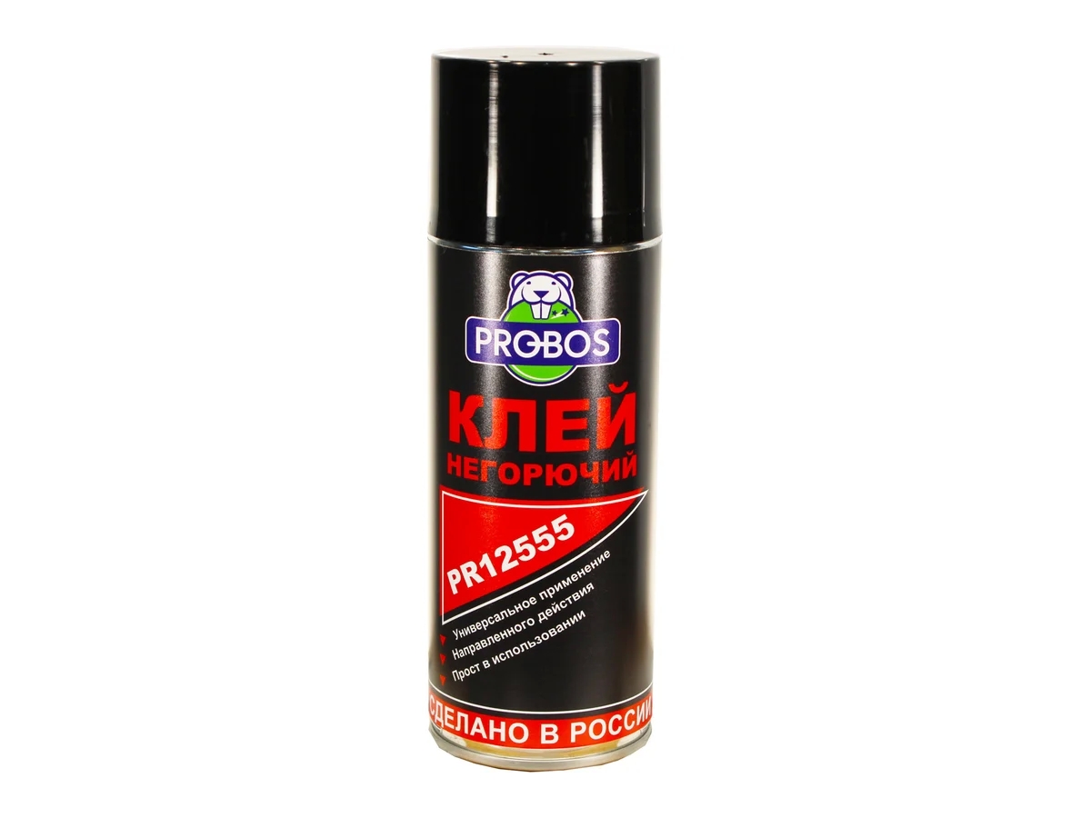 Клей негорючий PROBOS 520 мл, аэрозоль PR12555 предназначен для склеивания поролонов, текстиля, пластиков между собой, а также приклеивания их на деревянные и металлические поверхности. Баллон с аэрозолем, направленного действия. Универсальное применение. Используется в местах, где возможно воспламенение клея - рядом с нагретыми деталями, узлами, механизмами. Например, для приклеивания теплозащиты капота автомобиля.