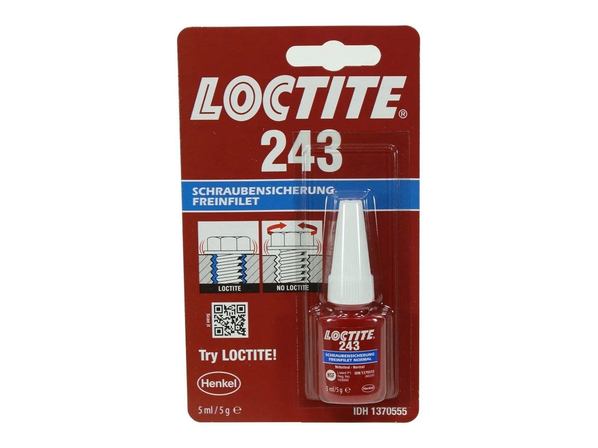 Фиксатор резьбы средней прочности LOCTITE 243 5мл 1370555 используют для фиксации и герметизации резьбовых соединений до М36, которые испытывают на себе воздействие вибраций и сильных нагрузок. Состав обеспечивает возможность дальнейшего демонтажа деталей с применением обычного ручного инструмента. Препарат подходит для обработки любых металлических поверхностей (нержавеющая сталь, алюминий, оцинкованные и пассивированные детали).