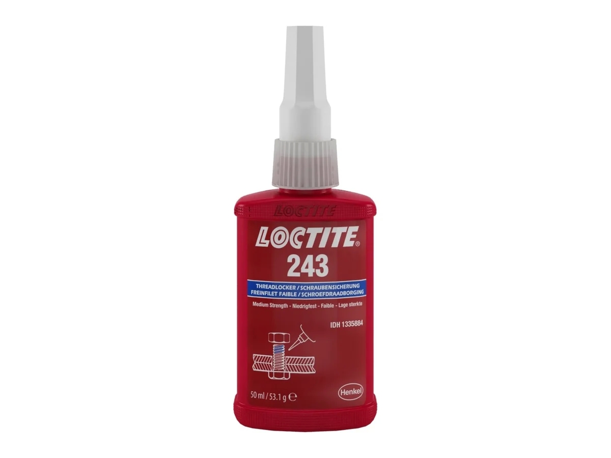 Резьбовой фиксатор средней прочности Loctite 243, 50 мл 1335863 служит для предотвращения развинчивания соединений с диаметром резьбы до М36 при воздействии вибраций и больших нагрузок. Препарат используется в случае, когда нужно осуществить демонтаж деталей с применением простого ручного инструмента. Идеально подходит для обработки поверхностей из неактивных материалов, например из стали с гальваническим покрытием и нержавеющей стали.