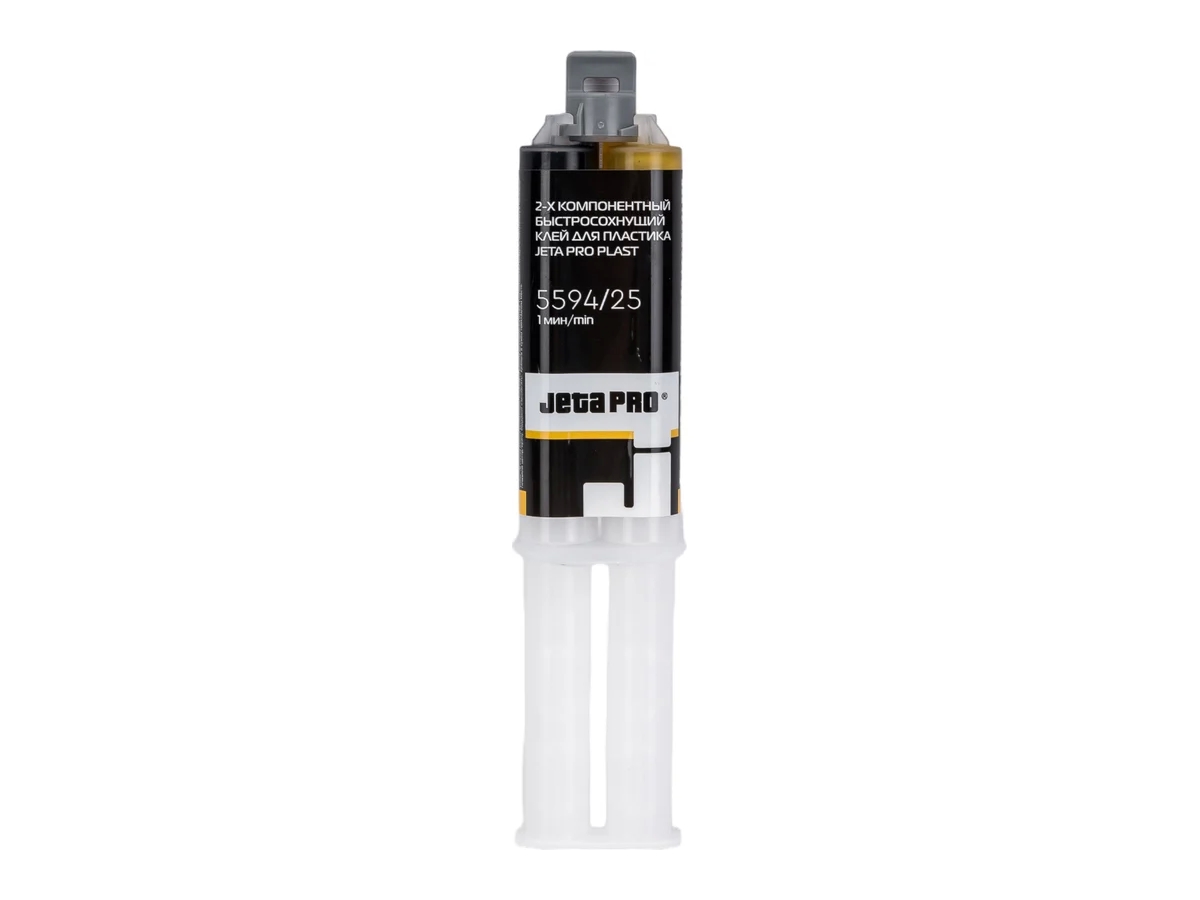 Клей для пластиковых элементов кузова Jeta PRO 1 мин 5594/0,025 black предназначен для ремонта пластиковых элементов кузова. Дозирование компонентов происходит автоматически, при выдавливании материала, для лучшего перемешивания применяются одноразовые смесительные насадки. Материал хорошо подходит для восполнения сквозных повреждений и фиксации отдельных частей автомобильного пластика. Клей устойчив к атмосферному воздействию и старению. После полимеризации продукта возможна шлифовка, сверление, нарезание резьбы. Перед окраской необходимо грунтование.