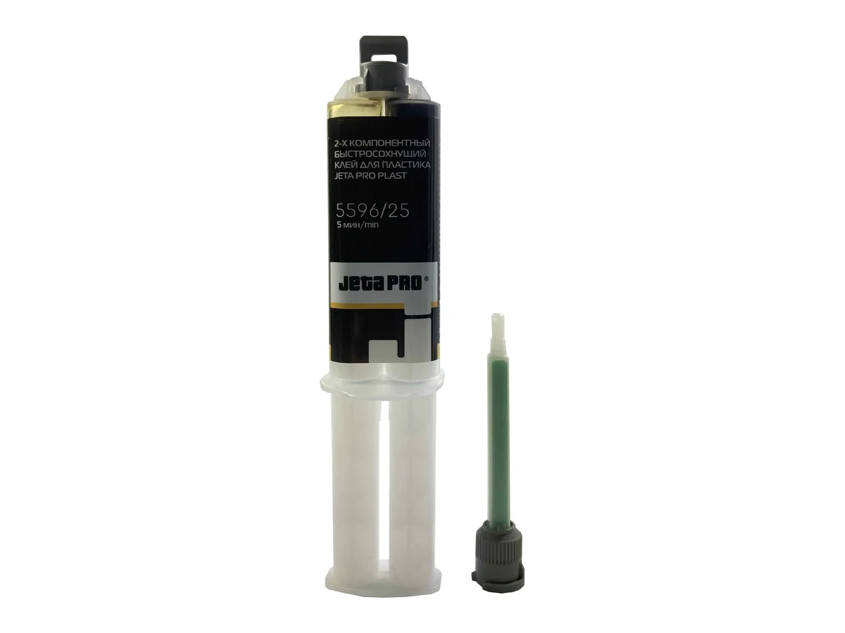 Клей для пластиковых элементов кузова Jeta PRO 5 мин 55960,025 предназначен для ремонта пластиковых элементов кузова. Дозирование компонентов происходит автоматически, при выдавливании материала, для лучшего перемешивания применяются одноразовые смесительные насадки. Материал хорошо подходит для восполнения сквозных повреждений и фиксации отдельных частей автомобильного пластика. Клей устойчив к атмосферному воздействию и старению. После полимеризации продукта возможна шлифовка, сверление, нарезание резьбы. Перед окраской необходимо грунтование.