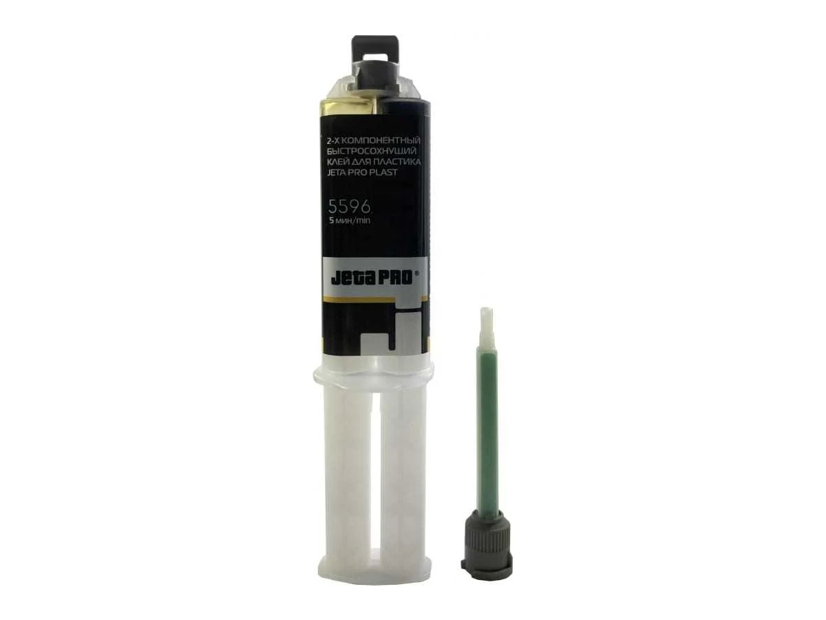 Двухкомпонентный, быстросохнущий, высокопрочный, эластичный состав Jeta Pro Plast для ремонта пластиковых элементов кузова. Дозирование компонентов происходит автоматически, при выдавливании материала, для лучшего перемешивания применяются одноразовые смесительные насадки. Материал хорошо подходит для восполнения сквозных повреждений и фиксации отдельных частей автомобильного пластика. Клей устойчив к атмосферному воздействию и старению. После полимеризации продукта возможна шлифовка, сверление, нарезание резьбы (через 20-30 минут после затвердевания). Перед окраской необходимо грунтование.