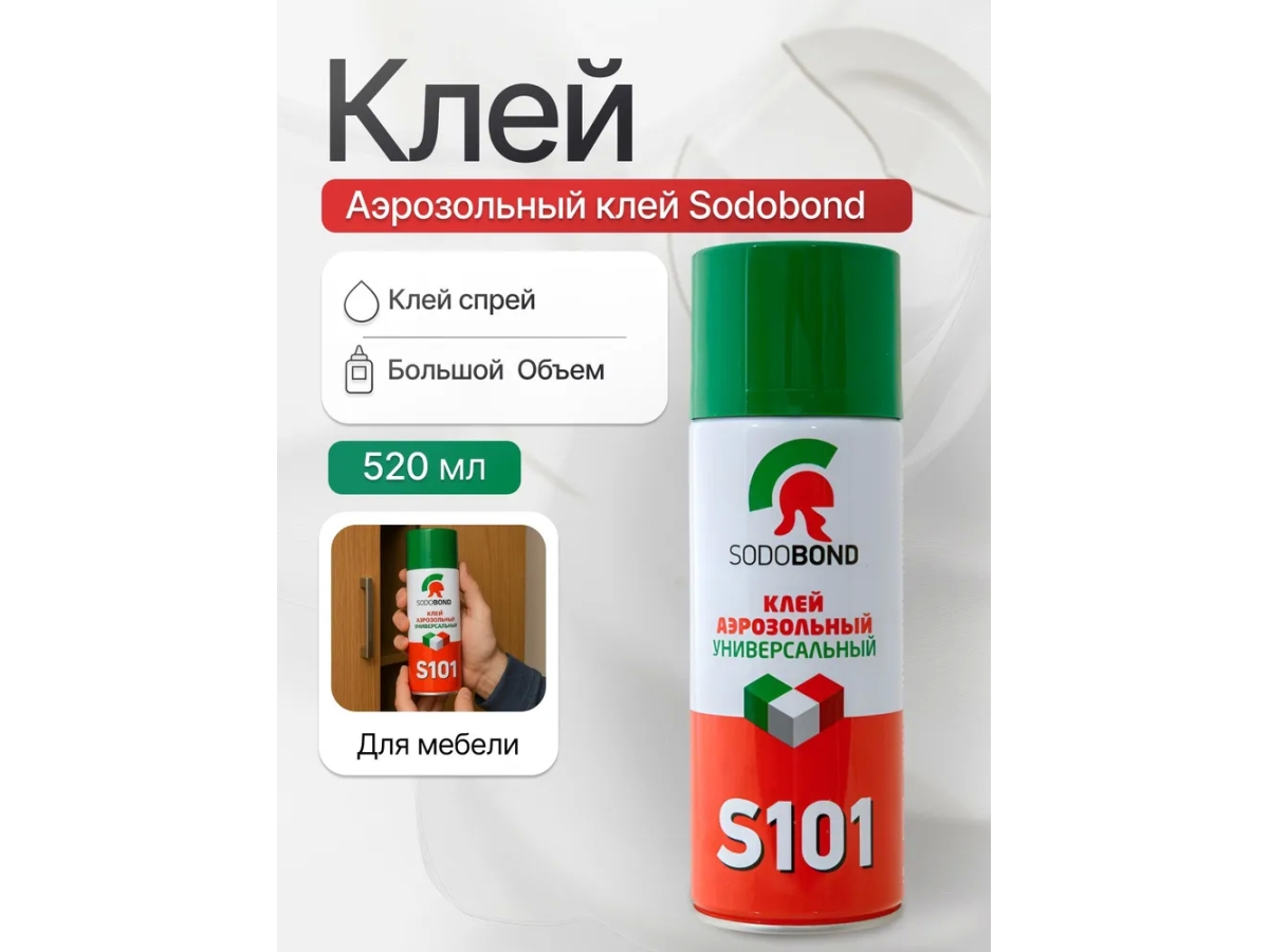 Универсальный высокопрочный клей-спрей SodoBond. Применяется при изготовлении и ремонте мебели, в производстве рекламных конструкций, в быту, и в различных производственных процессах. Применим для крепления изоляционных материалов при строительных и отделочных работах, в работе с искусственными волокнами, в текстильной промышленности, при ремонте автомобилей. С его помощью могут крепиться обивка салона и декоративные элементы отделки. Виниловые панели, металлические и пластмассовые детали, соединяются пластик, ткань, искусственная кожа, автоковролин и т.п. материалы.