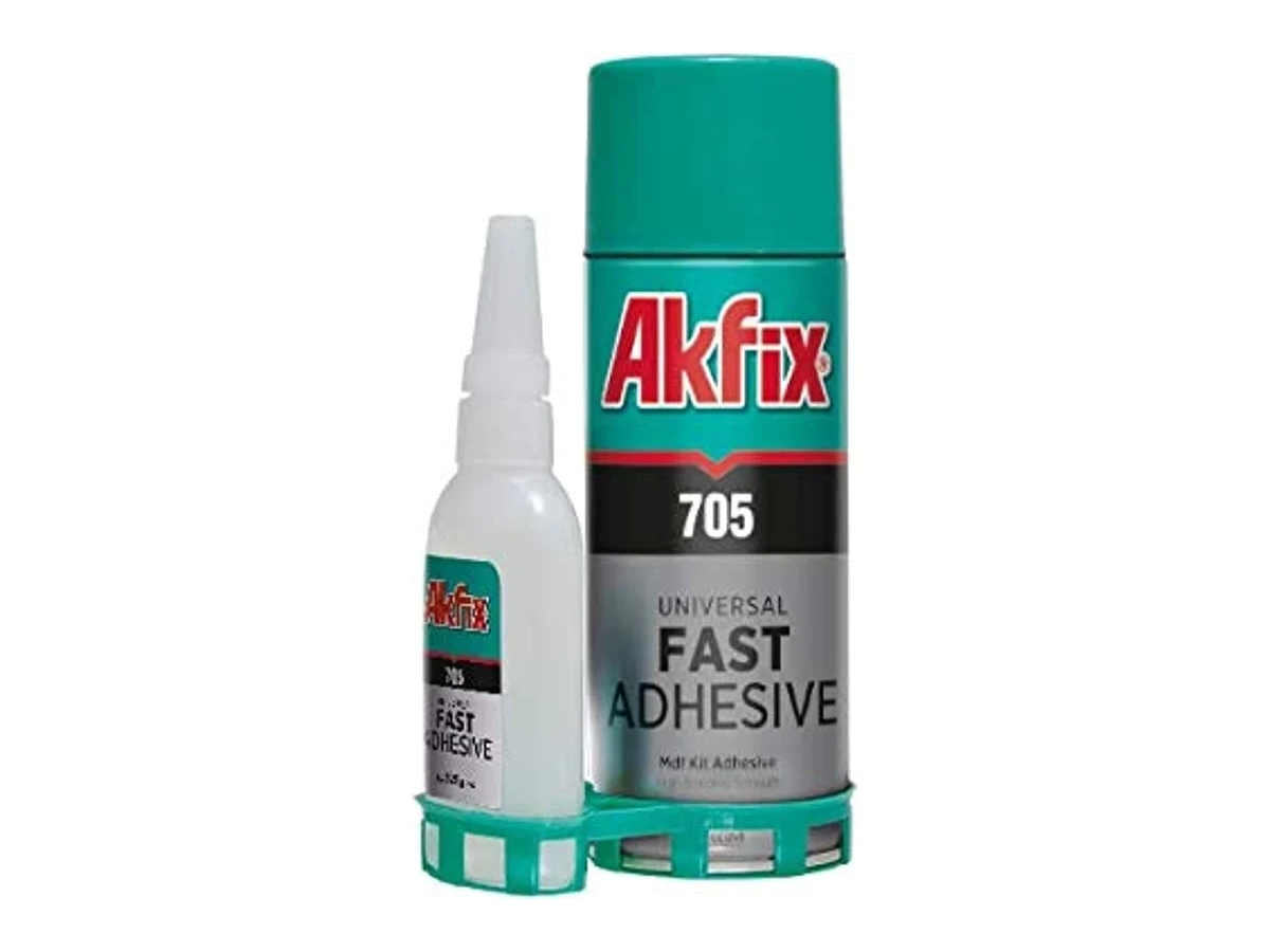 Набор для экспресс склеивания Akfix 705 65 гр+200 мл AN705_65 применяется для склеивания деталей из МДФ, дерева, кожи, резины.