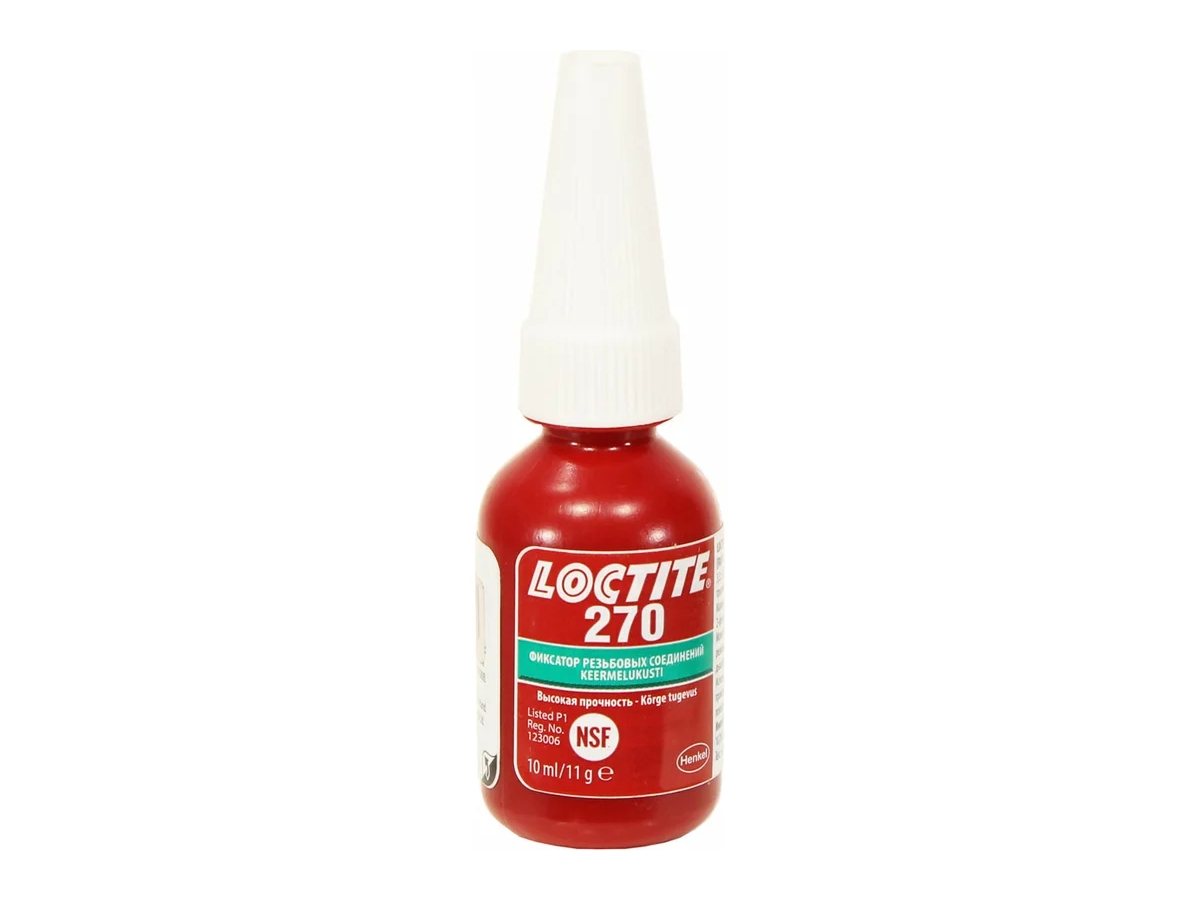 Фиксатор резьбы высокой прочности LOCTITE 270 10 мл 1918992 — это резьбовой фиксатор высокой прочности, который обеспечивает максимально эффективное соединение и герметизацию болтов, гаек и штифтов, предотвращая ослабление из-за вибрации. Продукт предназначен для постоянной фиксации соединений без ослабления. Эффективен на любых металлических поверхностях, включая пассивные, например нержавеющая сталь, алюминий и оцинкованные поверхности. Допускается наличие на поверхности незначительного загрязнения в виде технических масел, таких как моторные масла, консервационные смазки и СОЖ. Демонтаж возможен нагревом до 300 °C