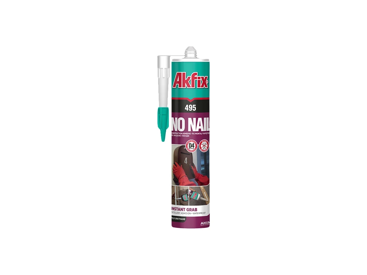 Полиуретановый экспресс клей Akfix Жидкие гвозди 310 мл 495 GA495 - однокомпонентный клей на полиуретановой основе для работ, требующих высокой начальной клейкости и прочности на растяжение.