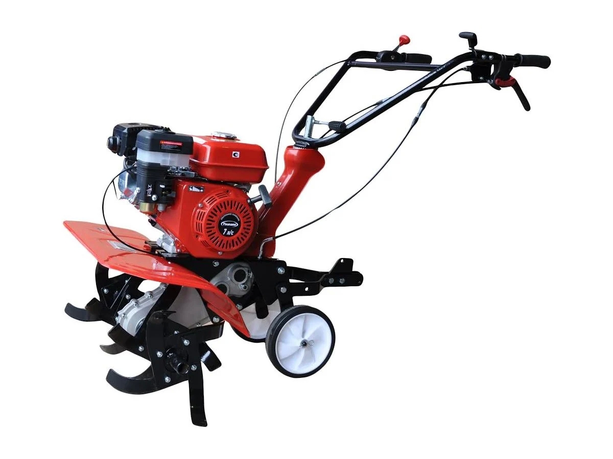 Бензиновый культиватор Tsunami TG 65 является мощной садовой техникой. Позволяет без особого труда вспахивать и очищать от сорняков почву. Оборудован 4-х тактным двигателем мощностью 7 лошадиных сил. Агрегат обрабатывает почву на глубину 150-300 мм. Защитное крыло предохраняет двигатель от загрязнения. Задние опорные колеса способствуют легкости перемещения культиватора по участку. Ширина обработки составляет 65 см.
