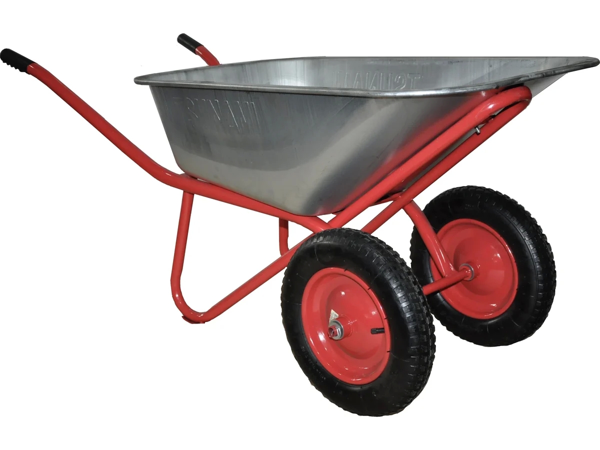 Строительная тачка с колесами TSUNAMI WB 250D 3.25-8 D0KB8WB250D0000 используется для перевозки сыпучих материалов.