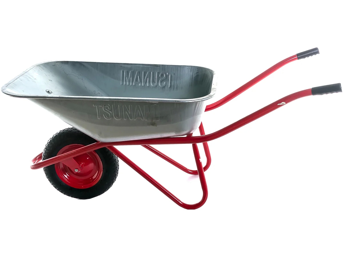Строительная тачка c пневматическим колесом TSUNAMI WB 180S 3.50-8 D0KB8WB180S2000 предназначена для бытового использования в саду или на стройке. Максимальная нагрузка составляет 180 кг.