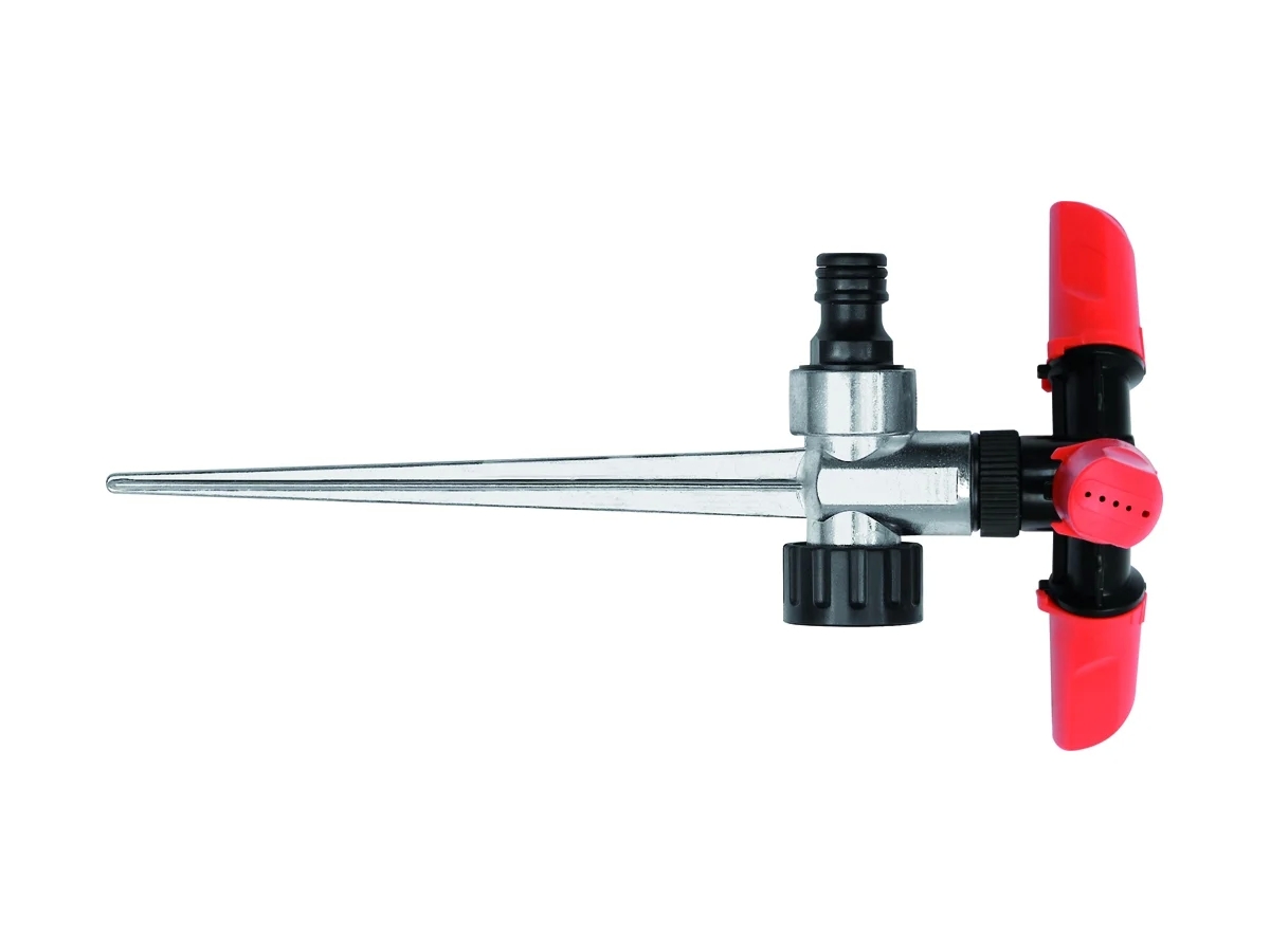 Круговой распылитель на пике YATO YT-8987 используется для организации стационарного полива садового участка. Изделие выполнено из сплава цинка, благодаря чему не подвержено коррозии. Наличие двух соединительных гнезд позволяет использовать распылитель в цепочке из нескольких штук. Угол головки изделия регулируется от 45 до 360 градусов, что обеспечивает полив необходимого сектора. Для надежной установки предусмотренна металлическая пика.